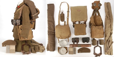 - French WWI Colonial Soldier's complete head-to-toe uniform and equipment display.